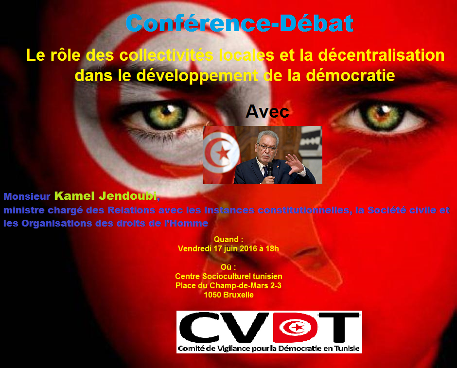 Le Comité de Vigilance pour la Démocratie en Tunisie, toujours fidèle à sa mission de veille et d’interpellation, et aux valeurs qu’il défend, notamment en termes de Droits de l’Homme et de la Démocratie organise une Conférence-Débat : Le rôle des collectivités locales et la décentralisation dans le développement de la démocratie
