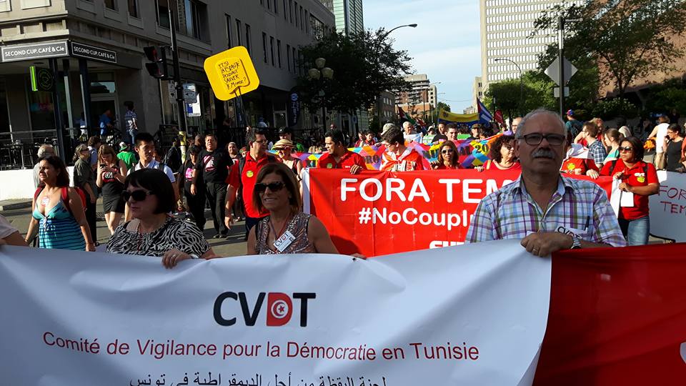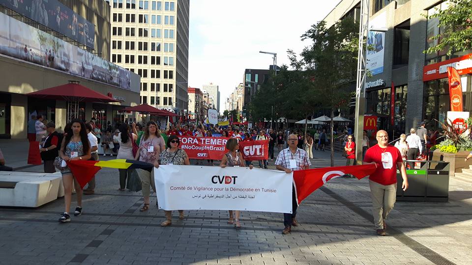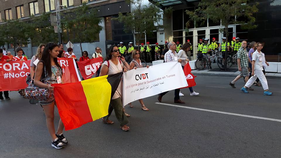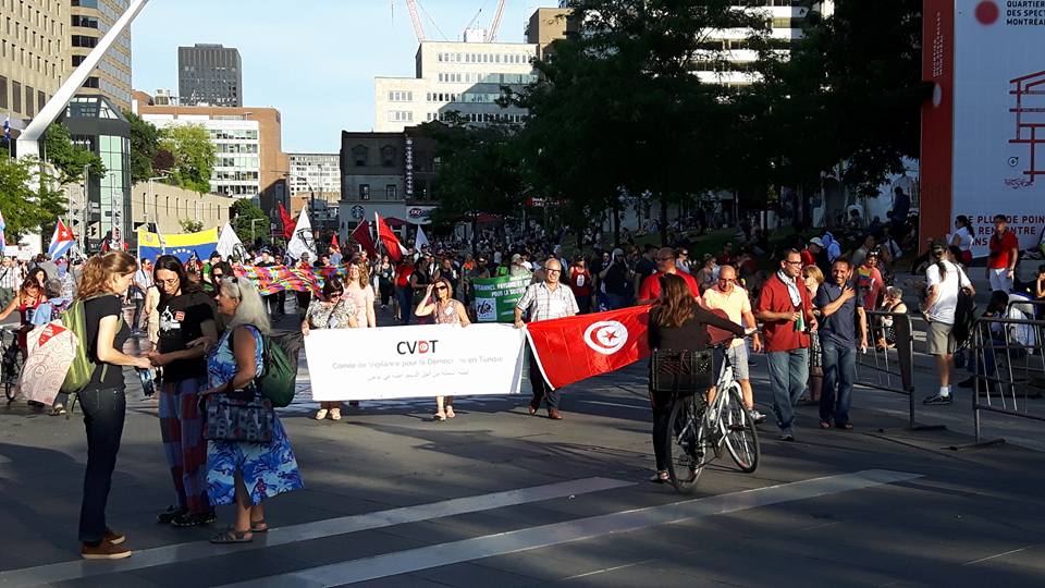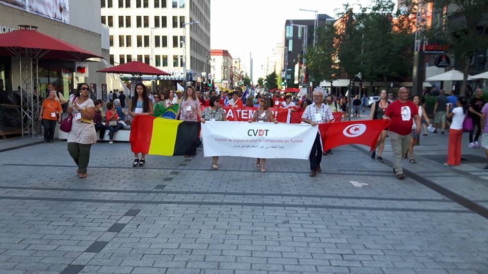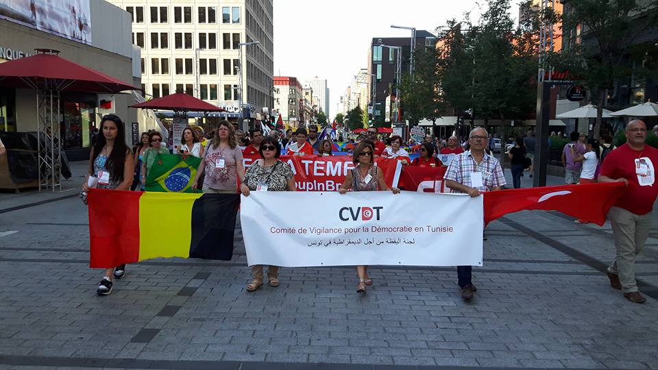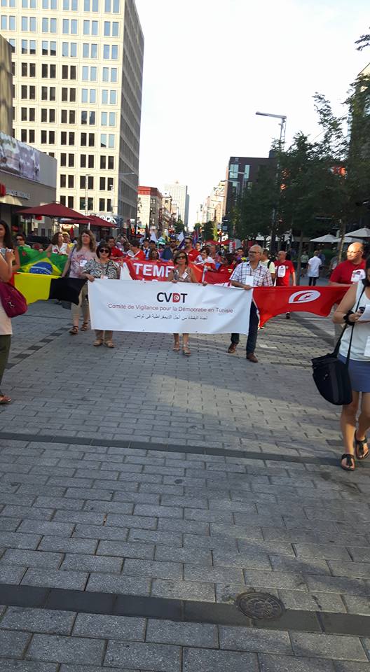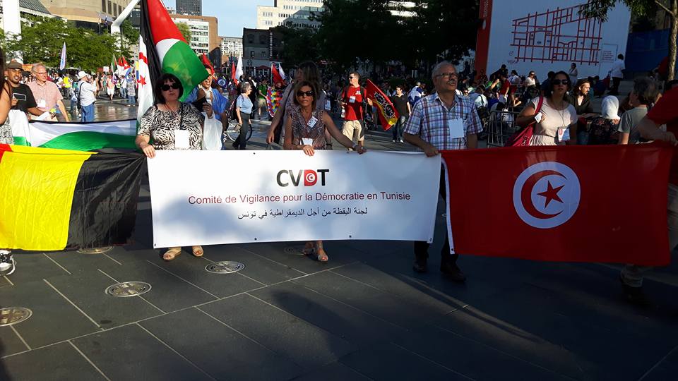 Actualité Evénements Marche d’ouverte du Forum Social Mondial Montréal 2016 Byinfo@cvdtunisie.org 23 août 201623 août 2016 Marche d’ouverte du Forum Social Mondial Montréal 2016. Avec la participation d’une délégation de Comité de Vigilance pour la Démocratie en Tunisie (Belgique)