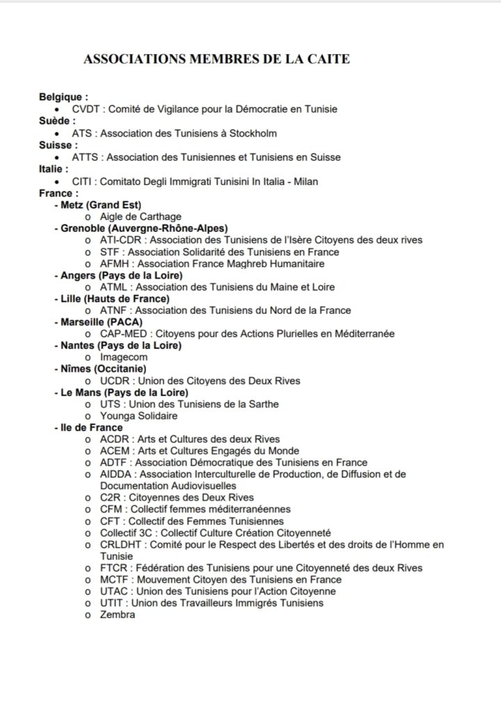 – L’instauration d’une concertation entre les pouvoirs publics et la société civile des Tunisiens Résidents à l’Etranger.